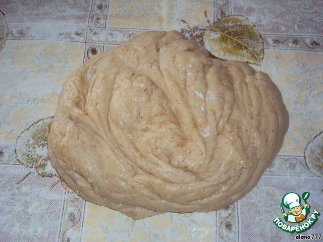 Подошедшее тесто обмять и выложить на стол, присыпанный мукой.