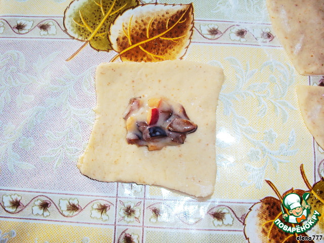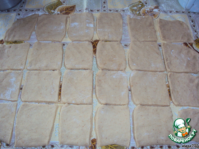 Раскатать и нарезать пласт на квадраты, размером 8*8см.