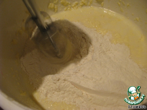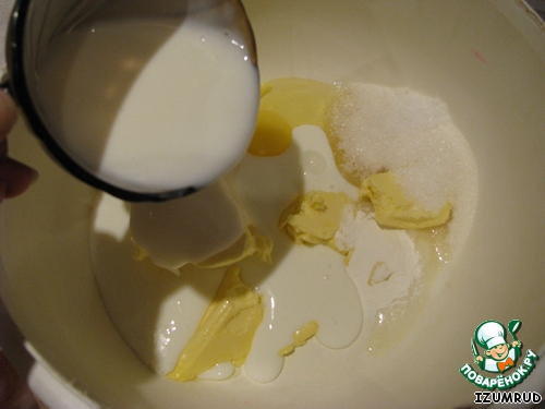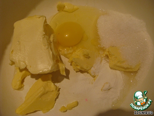 Смешать сахар, разрыхлитель, соль, масло, яйцо; взбить.
