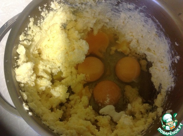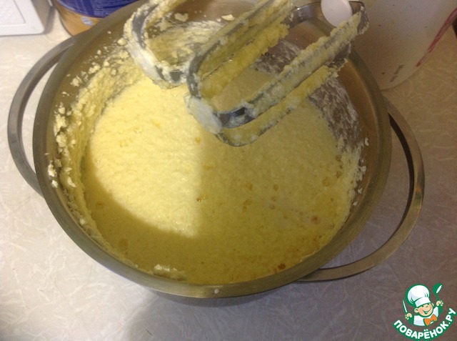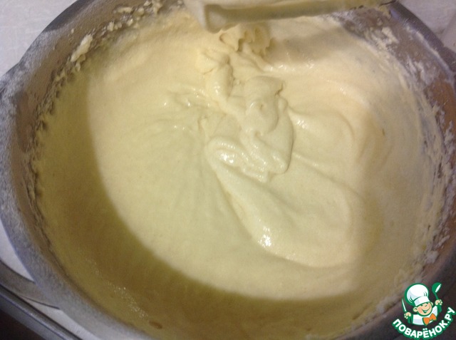 Теперь муку и разрыхлитель и еще раз взбиваем
