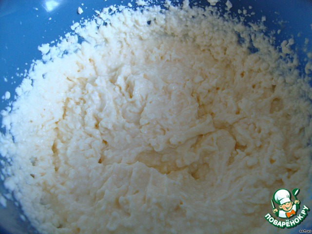 Приготовить творожную массу: творог, 3 яйца и оставшийся сахар хорошенько растереть миксером. Кто любит, можно добавить ваниль.