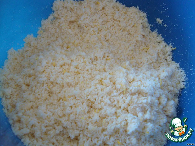 Влить растопленное масло и перетереть все в мелкую крошку.