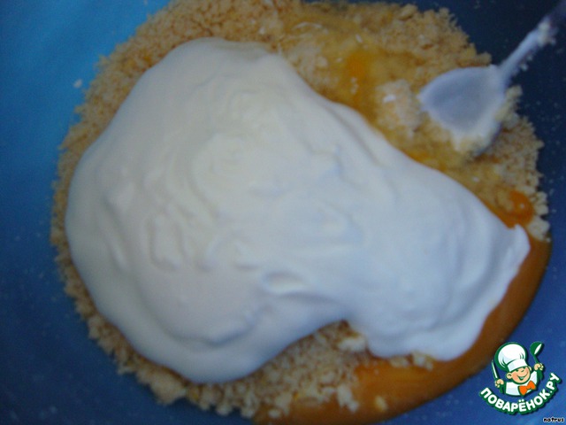 К другой части добавить яйцо и йогурт (как раз сейчас баночка Активии стала продаваться по 150 г), хорошенько перемешать.