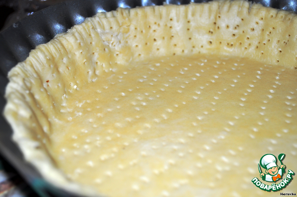 Затем раскатываем и укладываем в форму. Накалываем вилкой и убираем в холод минут на 20.