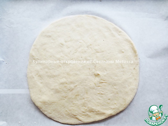 Готовое тесто разделить на 2 части. Из одной части раскатать круглую лепешку