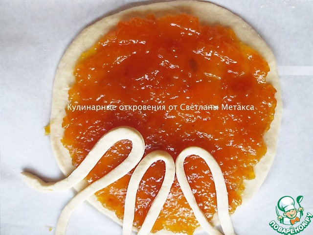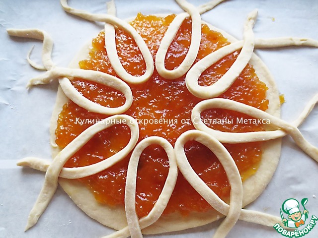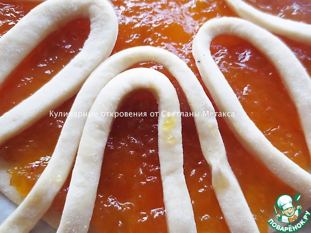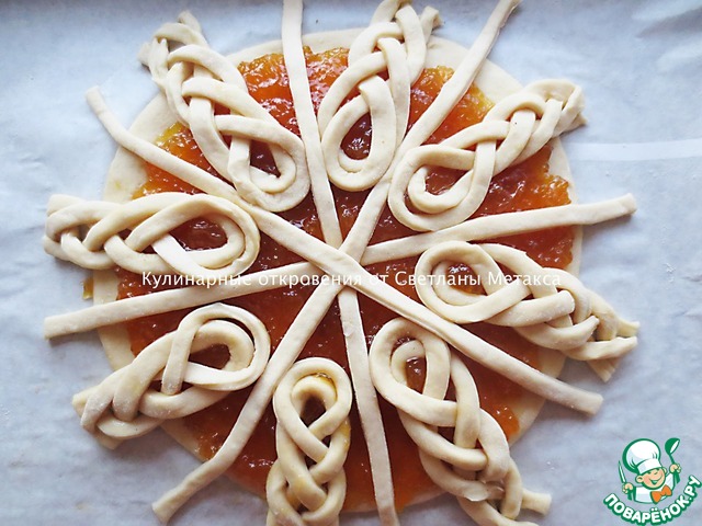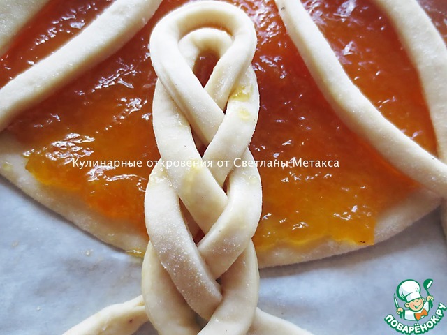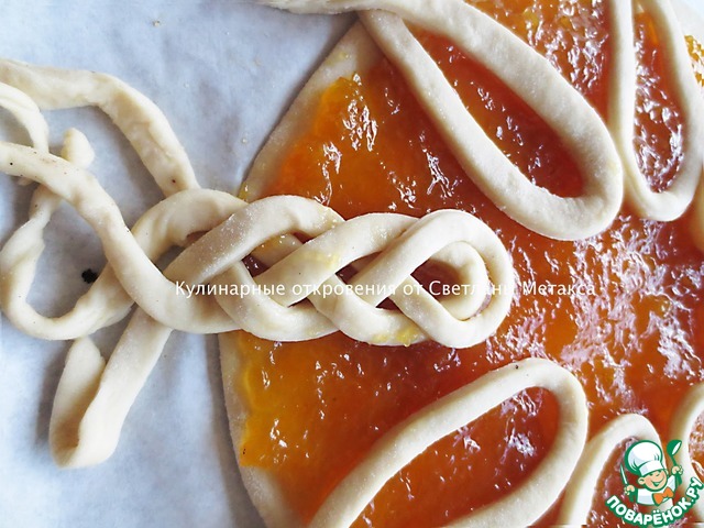 | Представляю Вашему вниманию пирог с начинкой из абрикосового джема. Идея оформления пирога моя личная. Она совсем простая, но конечный результат радует глаз. |