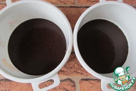 Не вынимая горячую основу из формы заливаем её оставшейся половиной - заливкой. Оставляем на столе до остывания, а потом убираем в холодильник на 3 - 4 часа, или дольше.
