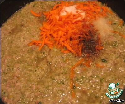 морковь трем на крупной терке, складываем все в сковородку, добавляем воду, соль, перец и 2ст.л. растительного масла.