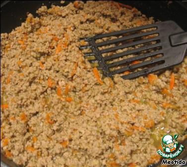 Жарим фарш до готовности, периодически помешивая. Оставляем остывать.