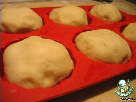 и складываем в форму для кексов., смазываем взбитым яйцом, можно посыпать кунжутом.