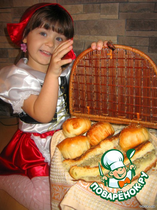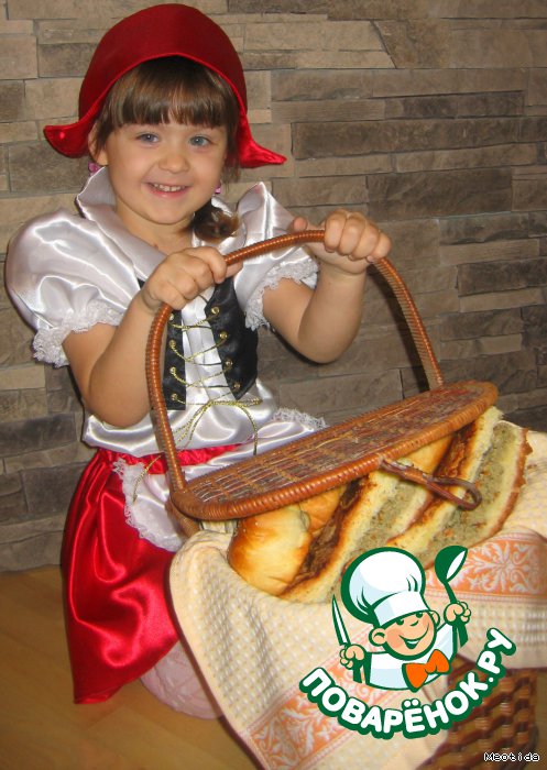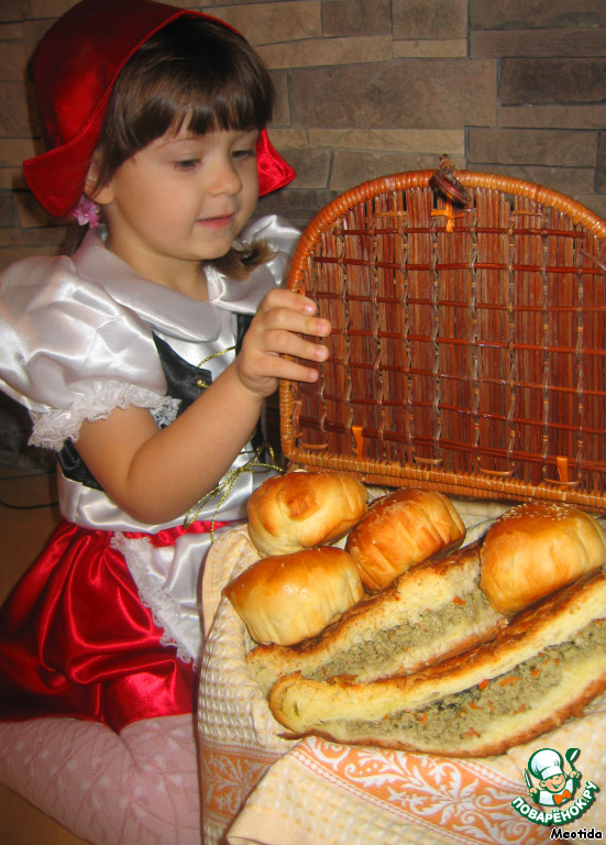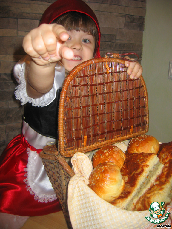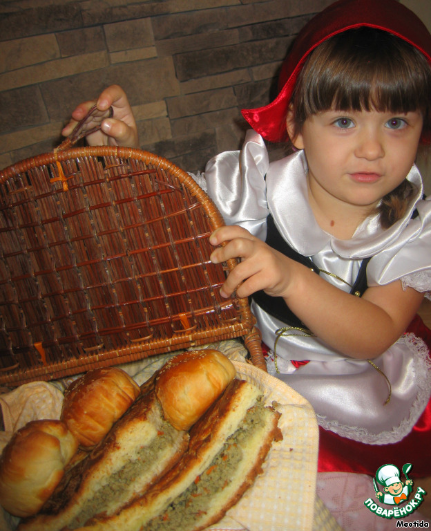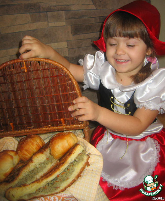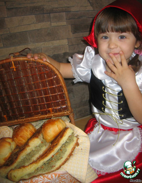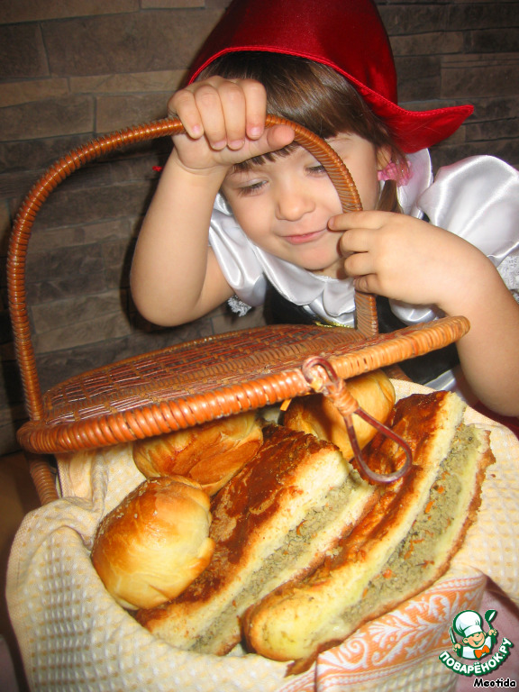 "Доченька, это пирог с мясом - для серого волка гостинец, а бабушка с начинкой из картофеля с сыром пирожки любит. Увидишь в лесу волка, не бойся, да за корзинку не прячься, скажи ему:
