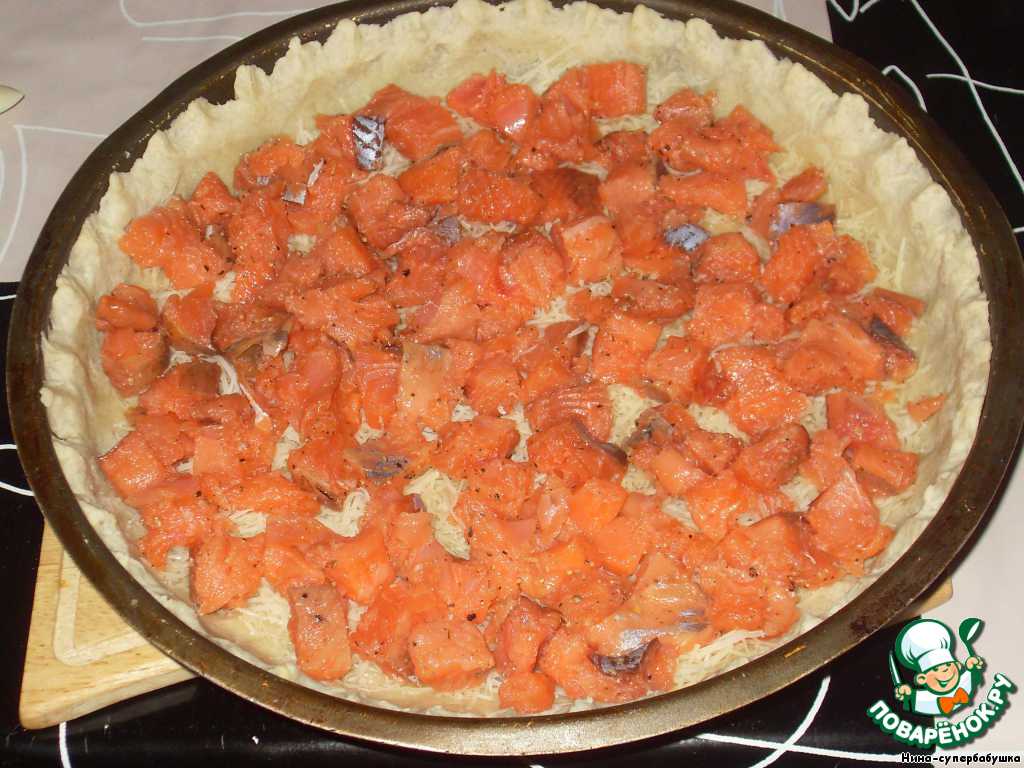 Очень вкусный пирог! Мне показалось странным, что в рецепте отсутствует лук. Все-таки красная рыба немного суховата и лук, как мне кажется, добавил бы сочности. Но и без лука получилось очень вкусно. Присоединяйтесь. Приятного аппетита!!!