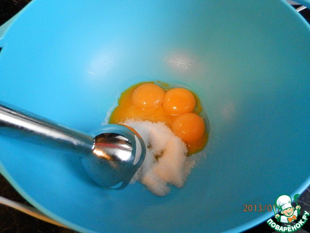 Теперь займемся тестом. Желтки отделяем от белков. Взбиваем желтки с саxаром.