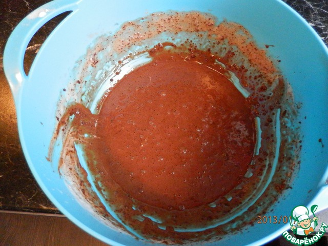 Теперь добавляем растопленный (в микроволновке или водяной бане) шоколад.