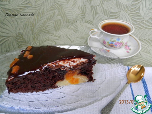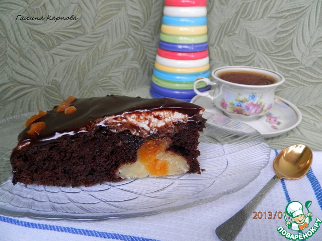Шоколадный торт с творожными шариками и курагой