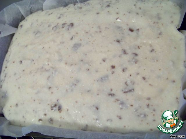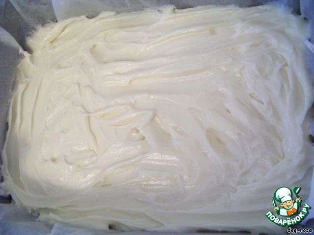 Выкладываем тесто в форму, которую предварительно выстилаем бумагой для выпечки. И ставим в духовку (180 град.) минут на 15, чтобы тесто немного запеклось, не было жидким.