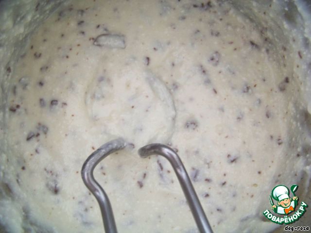 Всыпаем крахмал и соду (по рецепту не было написано, нужно ее гасить или нет, я погасила). Получается довольно-таки жидкое тесто, как сметана.
