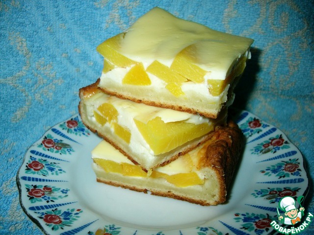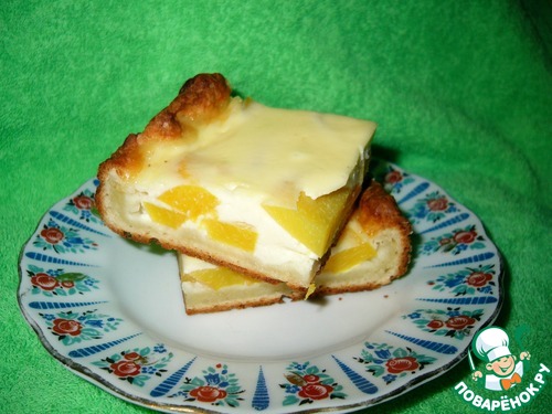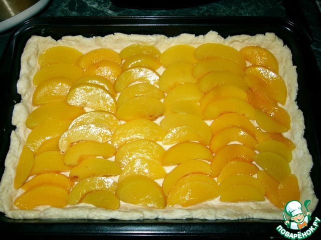 Пирог из творожного теста с персиками
