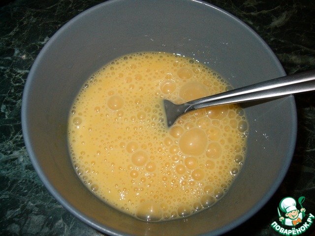Приготовить заливку-яйца взбить вилкой.