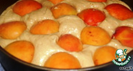 Выложить тесто в форму (26 см в диаметре, дно застелить пекарской бумагой, бока смазать маслом), разложить сверху половинки абрикосов срезом вниз.