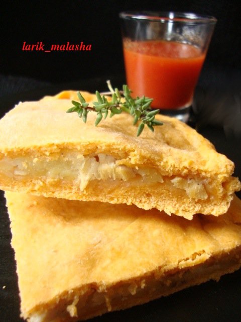 Автор оригинального рецепта пишет, что с таким тестом можно делать и сладкие пироги, что вкус томатного сока в нем не чувствуется. Видимо, у меня был какой-то особый сорт сока, так как вкус томатного сока немного чувствовался в пироге. Поэтому решать Вам. Если все-таки соберетесь делать сладкий пирог, то добавьте в тесто 0,5-1 стак. сахара.