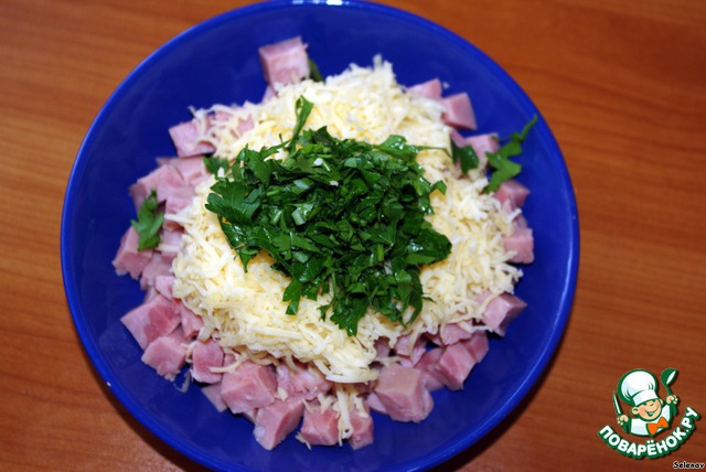 Смешайте с тертым сыром, чесноком, рубленной петрушкой, перцем