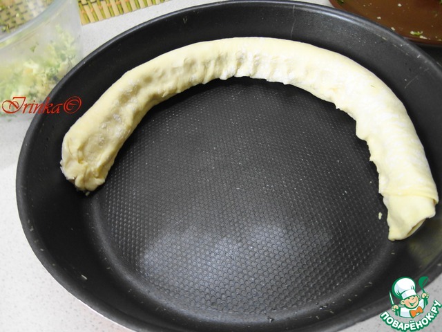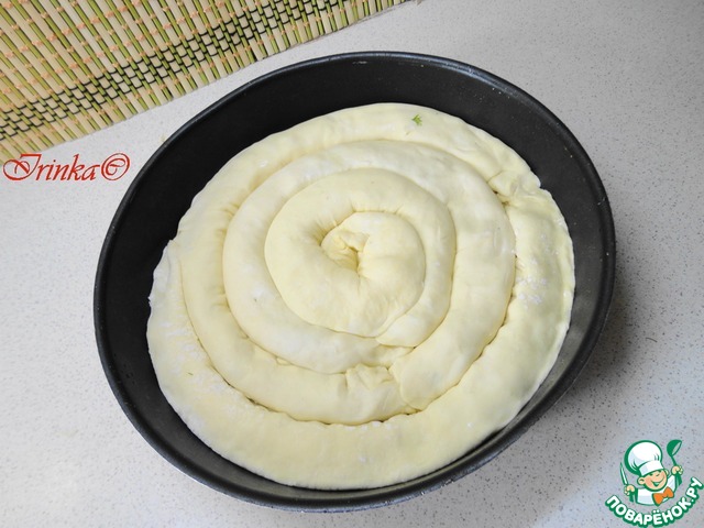 Подготовленные рулетики выкладываем в форму в виде спирали,