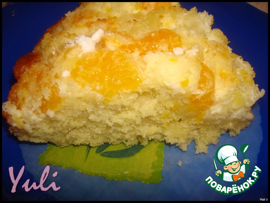 | Нежный, тающий во рту пирог, из столь любимых нами фруктов с добавлением кокосовой стружки превратит ваше вечернее чаепитие в экзотическую сказку и мысленно отправит вас в тропический рай... |