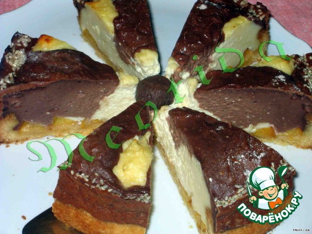 | этот пирог понравится и тем, кто не любит творог.. ну и, конечно, всем любителя посвящается: нежная сладкая.. песочная основа.. кусочки нектарина.. немного орешков (кешью), которые в готовом пироге приобретают необычный.. приятный вкус сочетание ванильной и шоколадной творожных начинок.. немного кунжутных семечек... ну очень вкусный и полезный пирог, которого так и хочется съесть еще кусочек это пирог на каждый день.. но и на праздничном столе он имеет большой успех |