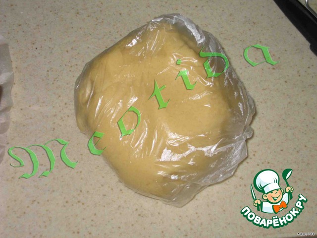 Tесто должно получиться нежное, но не липнущее к рукам, обернуть его в пленку и убрать в холодильник на часок.
