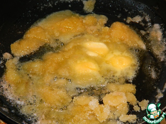В это время для начинки растопить масло и всыпать сахар.
