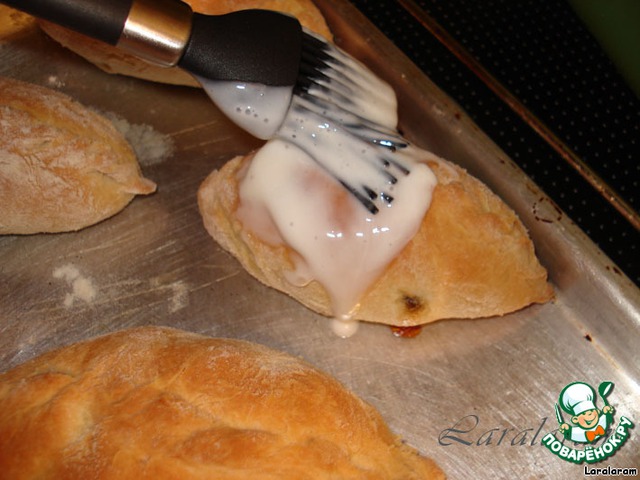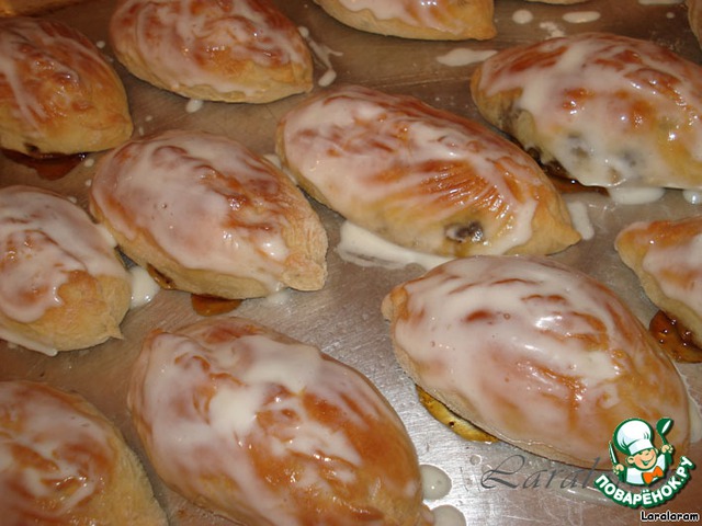 Готовые пирожки вынуть и смазать обильно глазурью.