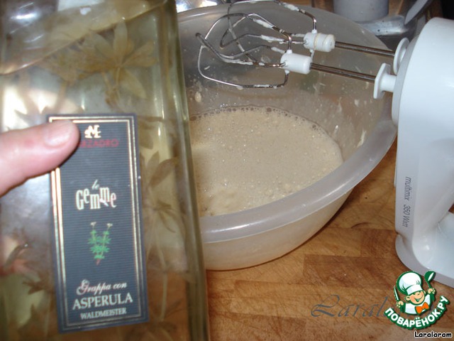 затем растопленное масло, растительное масло, соль, сахар, водку и муку.