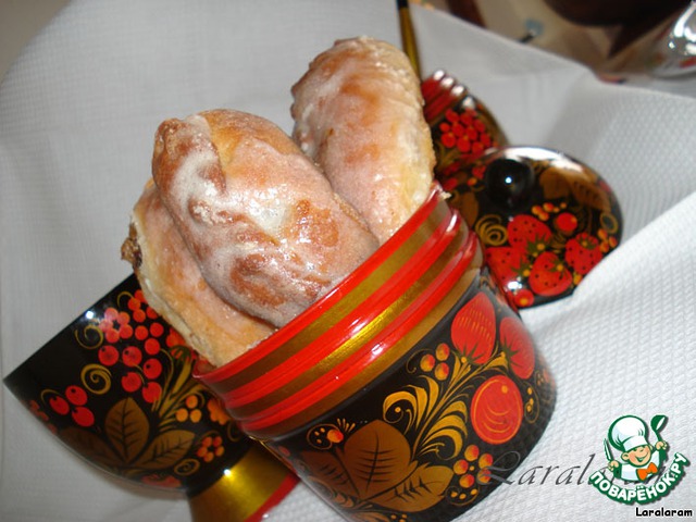 | Рецепт был прочитан в аэропорту Киева Борисполь в какой-то кулинарной газетке на украинском языке. Да, странными путями и судьбами попадают к нам рецепты. Когда я их первый раз испекла, то поняла, что сама судьба меня к ним вела. |
