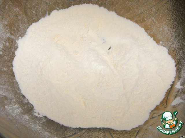 Постепенно влить воду. Добавлять по 1 ст.л. до тех пор, пока тесто не будет лишь слегка держать форму.