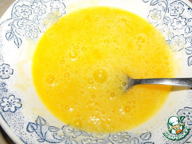 Венчиком взбить слегка яйца, вмешать сахар и соль.