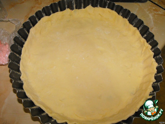Охлаждённое тесто раскатать на присыпанной мукой поверхности в диск и выложить на дно формы.