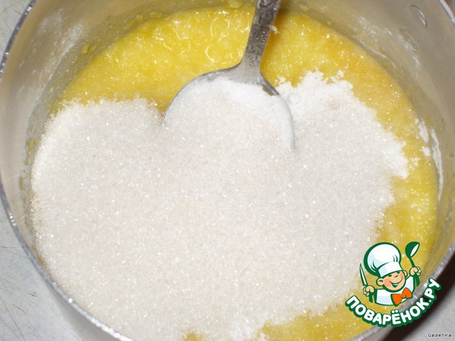 Конфитюров, варенья или джемов у нас не водится, пришлось по быстрому сообразить апельсино-лимонную промазку. А можно просто взять любое кисленькое варенье.