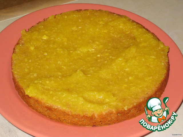 Дать тесту полностью остыть, разрезать вдоль на два коржа.