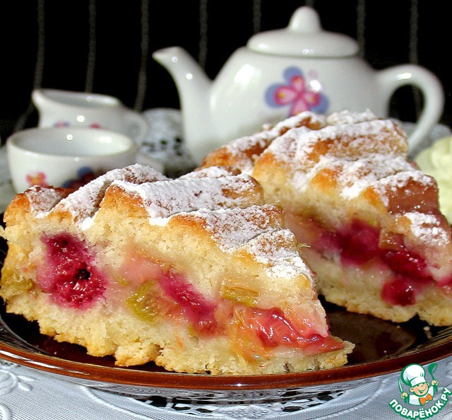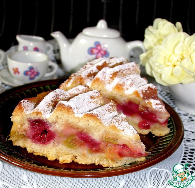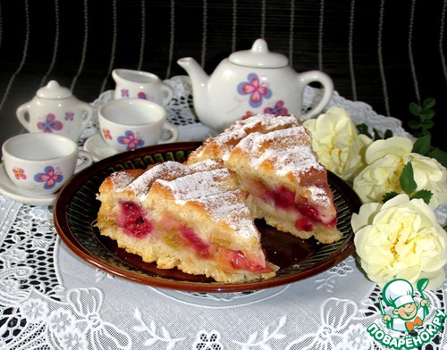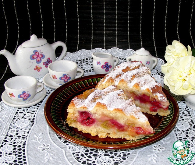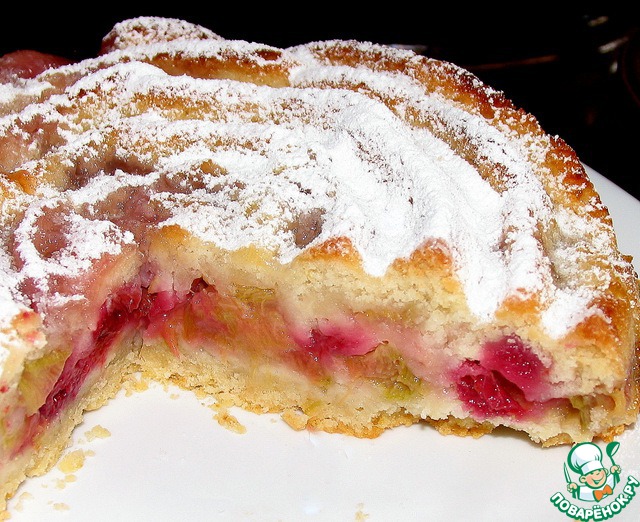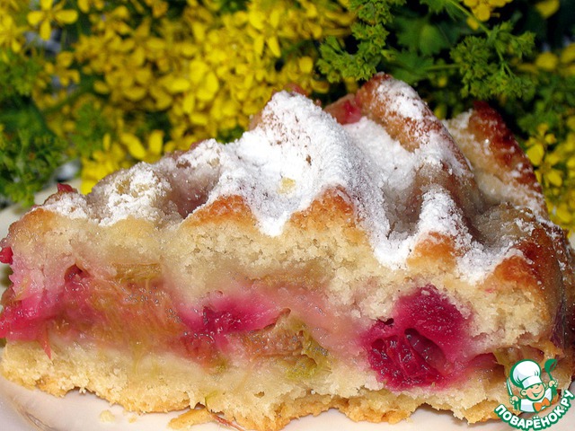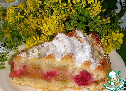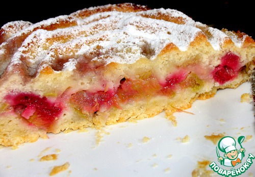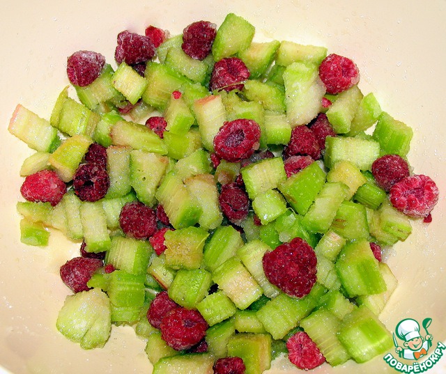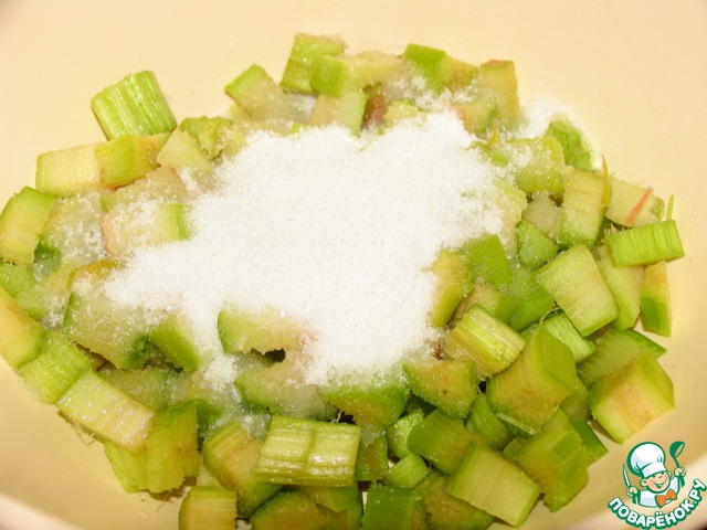 Для начинки очистить, нарезать не мелко ревень и насыпать сахар.