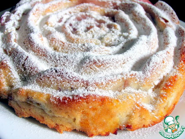 Подождать, когда немного он остынет, и посыпать верх сахарной пудрой.