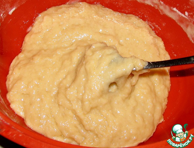 Готовим тесто. Все ингредиенты насыпать в ёмкость и налить всю жидкость, перемешать хорошо миксером.