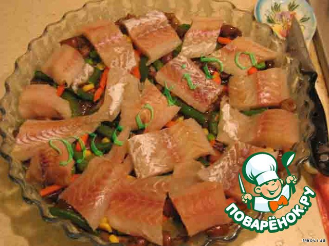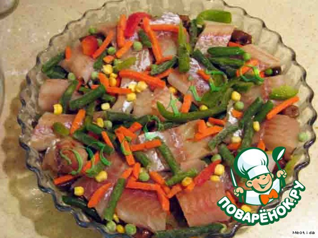 рыбку надо помыть, обсушить бумажными полотенцами и порезать крупными кусочками