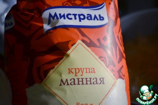 Затем, помешивая, всыпать манную крупу ТМ Мистраль.