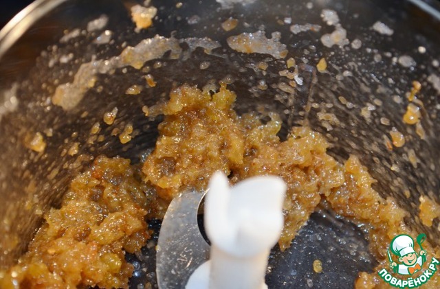 Пропустить через мясорубку или блендер, соединить с оставшимся сахаром, перемешать.