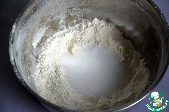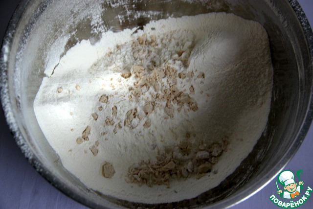 В просеянную муку раскрошить дрожжи и немного перетереть их с мукой.