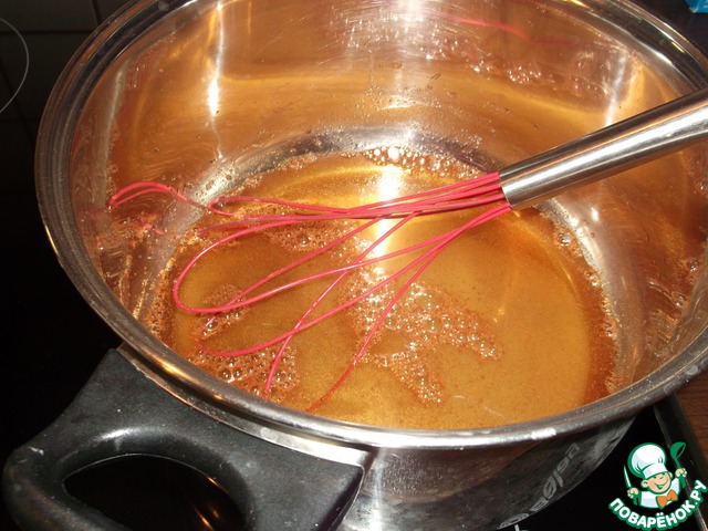 300 мл яблочного сока соединить с 125 г сахара и корицей. Довести до кипения.