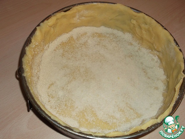Дно формы посыпаем 3-мя ст. л. панировочных сухарей. Форму с тестом ещё раз охлаждаем в течении 30 минут.