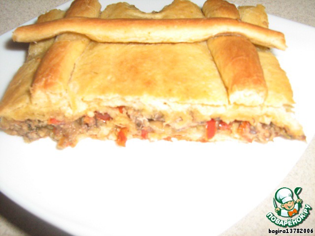 | Этот интересный и необычный рецепт я случайно увидела в Интернете. Простой в приготовлении, с доступными ингредиентами, этот вкусный и сочный пирожок оправдал мои надежды - мне понравилось. |