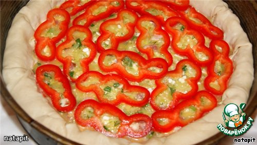 Выстелить полученную начинку по кругу и по краю бортика.